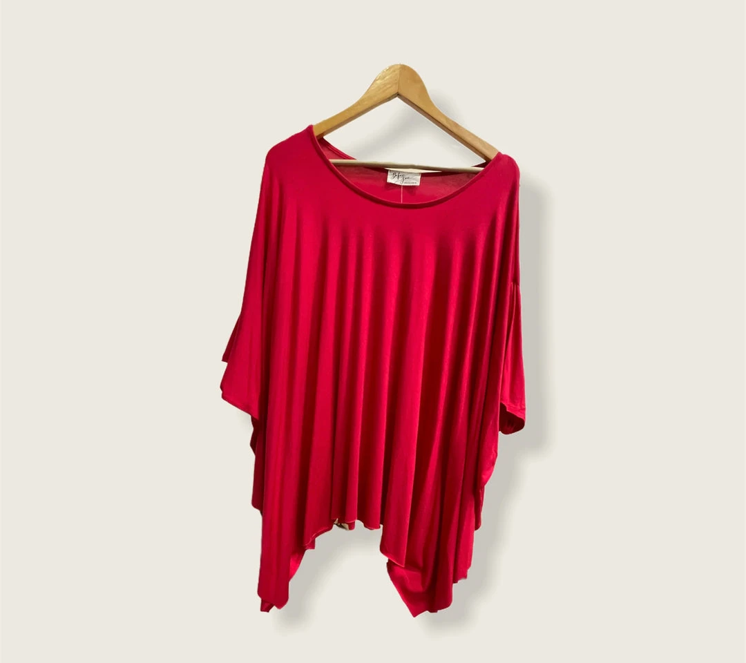 Round Neck Rayon Jersey Asymmetrical Hem Poncho Style Top.