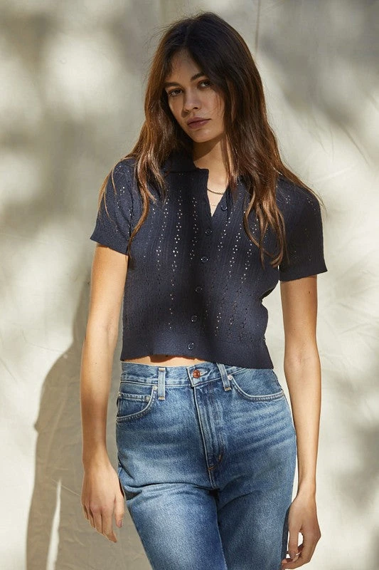 Knit Shirt Style Short Sleeve Sweater Short Top.