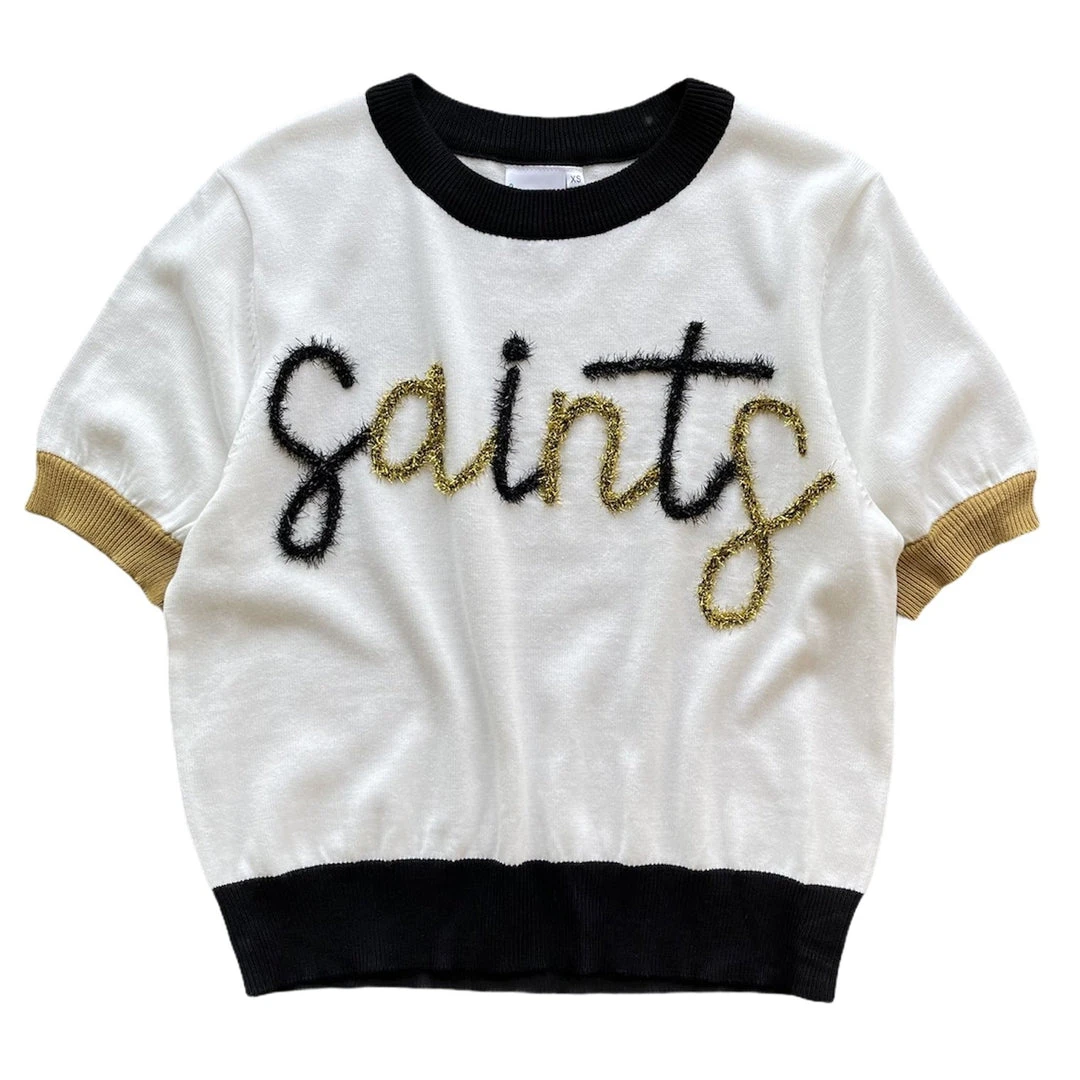 The Saints Glitter Script Short Sleeve Sweater