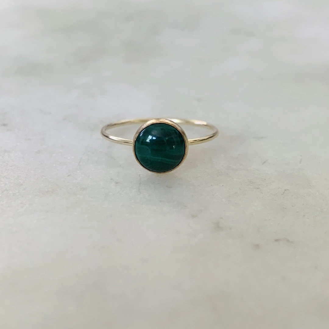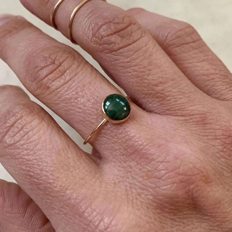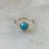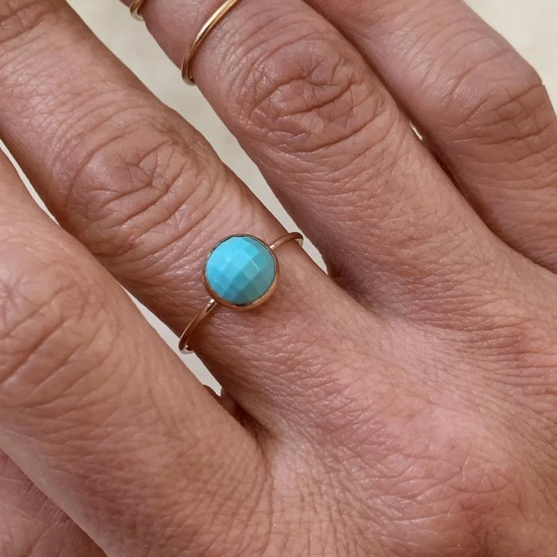 Dawson set these 8-millimeter capuchin stones into gold-filled wire rings sourced from Albuquerque!