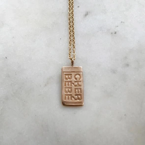 The Cher Bebe Necklace was born from a collaboration between MIMOSA and the fabulous designers at Parish Ink in Lafayette! The pendant depicts the classic Cajun phrase that basically means “oh how cute!” or more literally, “darling baby!”