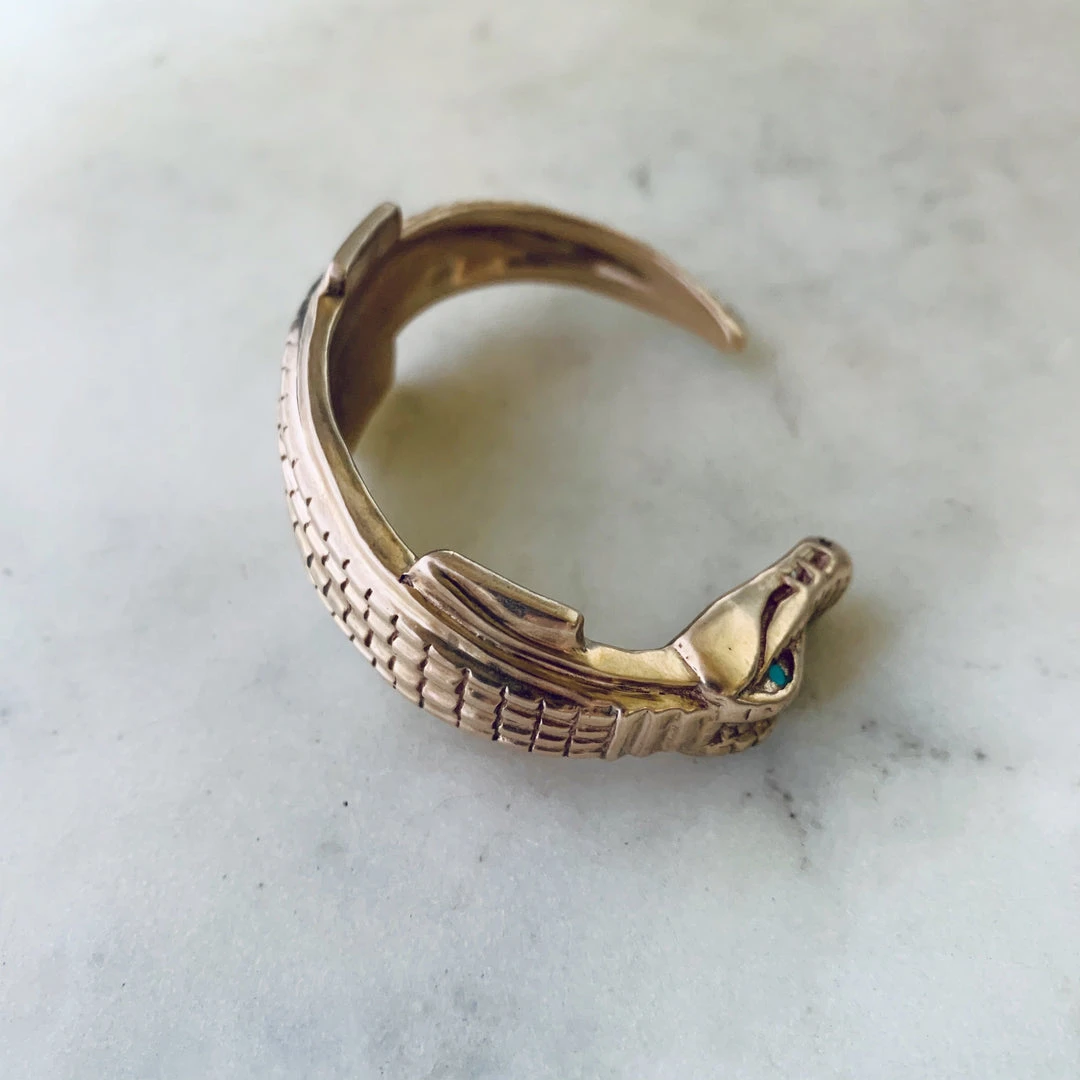 The alligator cuff was inspired by the Louisiana state reptile and features two beautiful inset 2-millimeter turquoise stones!Â
