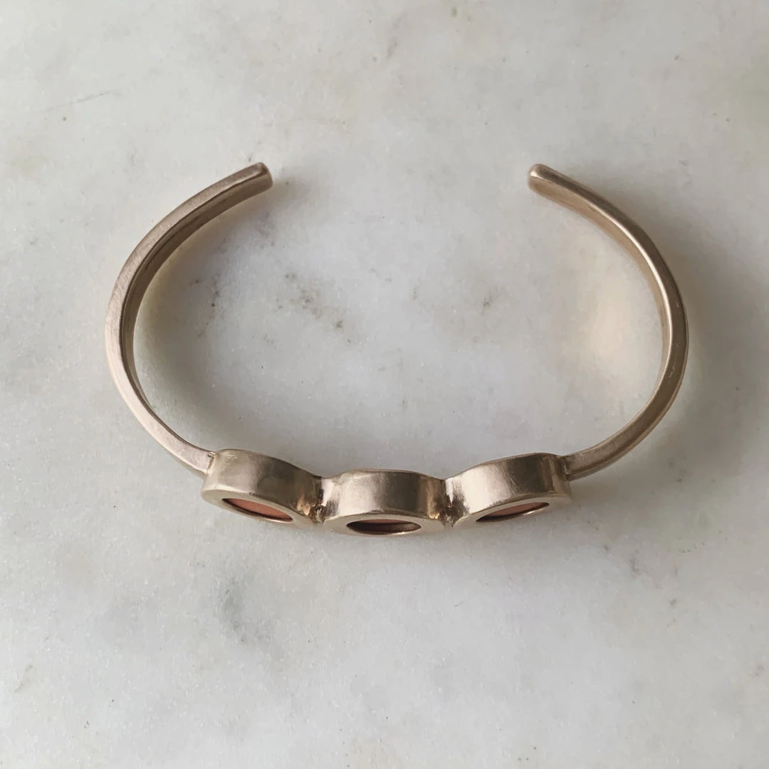 The Essential Oil Diffuser Cuff is a stylish way to diffuse your favorite oils, on the go! Simply add a drop of your favorite essential oil to the terra cotta disc and the scent will last up to a couple of days!  *Make sure not to wear it while gardening or any heavy lifting, trust us from experience.Â