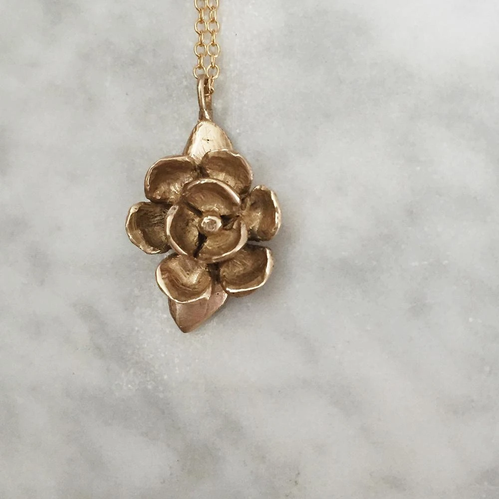 The Louisiana State Flower is the perfect gift for any woman in your life. The Magnolia Necklace hangs from one of the leaves of the flower.
