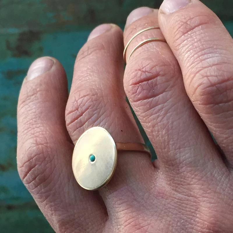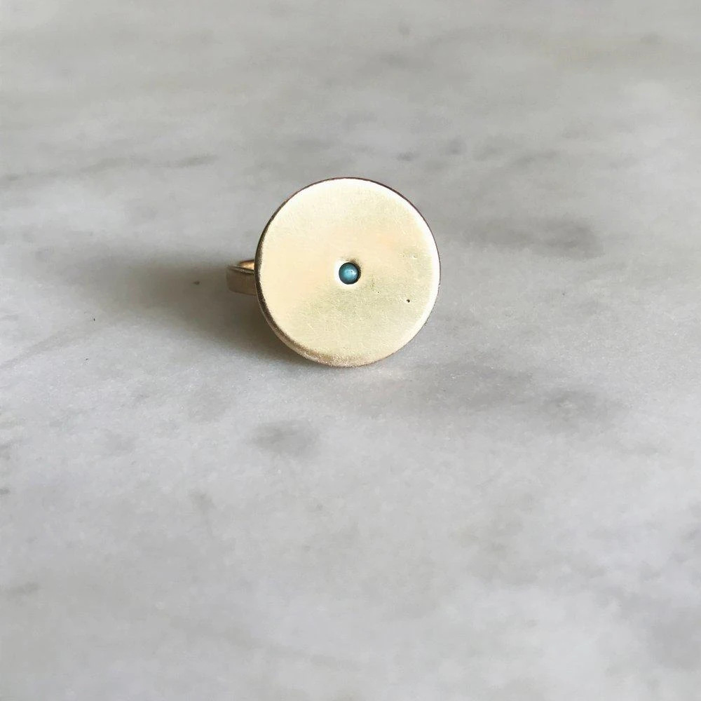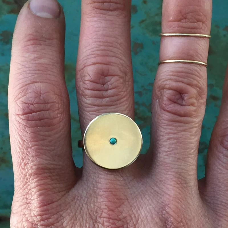 The Minimal Circle Turquoise Ring is a simple, yet classic with a genuine turquoise stone detail at the center. Wear this ring to compliment AND elevate any look.Â