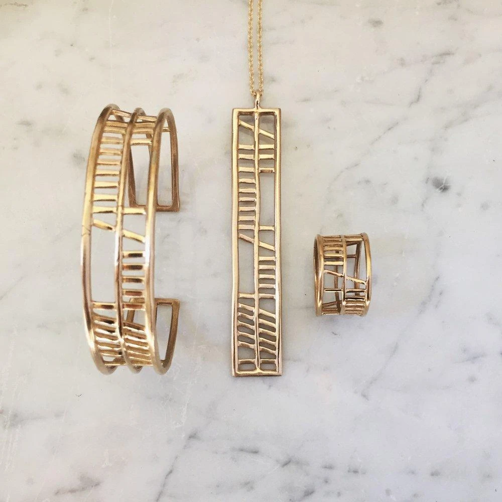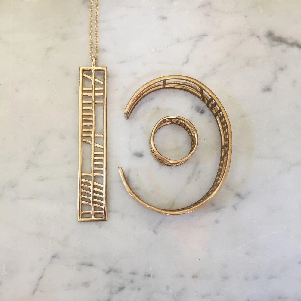 Depicted on this piece are the words “Anam Cara” in Ogham, an ancient script used to write the early Irish language from 300-800 AD. The term Anam Cara is Gaelic for “soul friend” — a friendship where your soul finds its most kindred companionship.