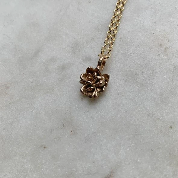 This necklace is made with cast succulent babies hand picked and grown from our friends at Baton Rouge Succulent Co.  Measures approximately 1/2″ x 1/4″.