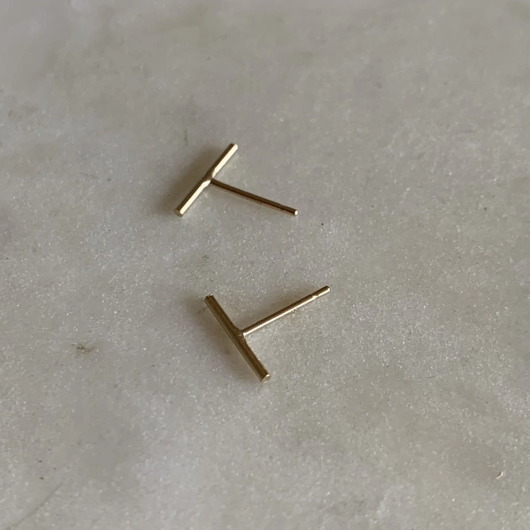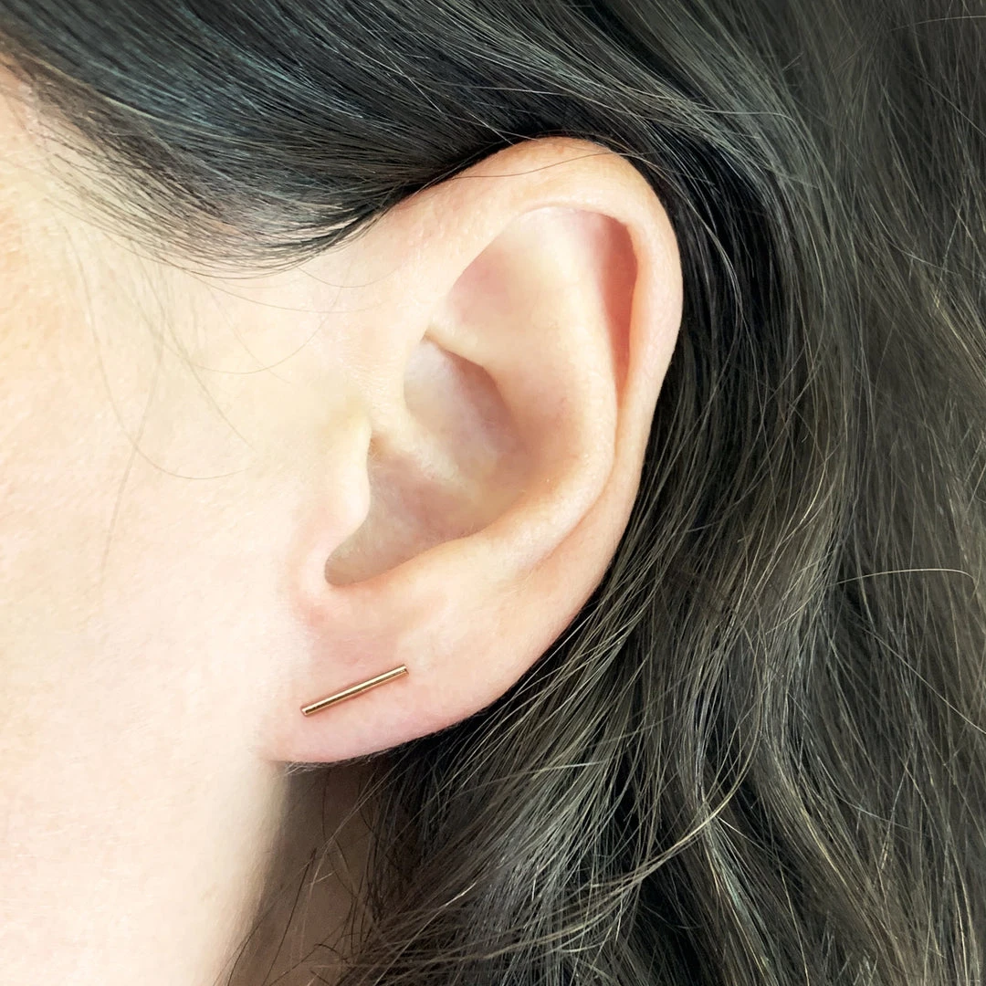 These dainty bar post earrings feature a rounded bar with a bright finish.