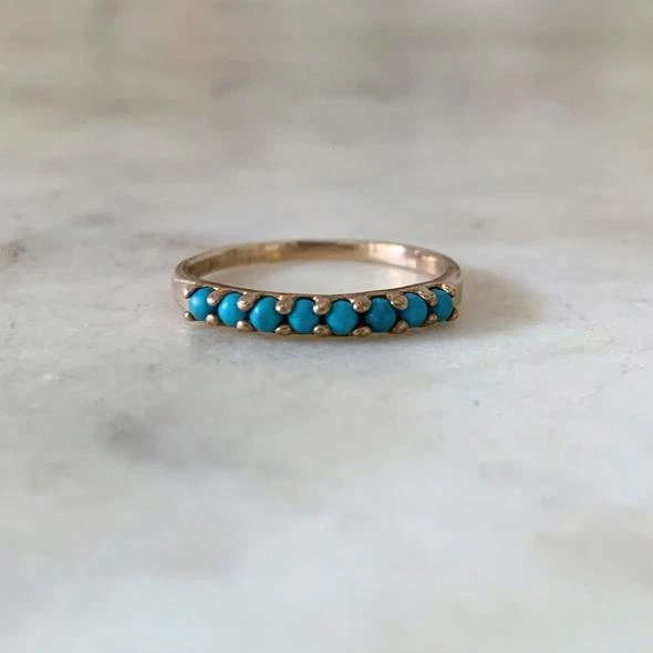 Eight 2-millimeter stones are set in this simple and delicate ring.