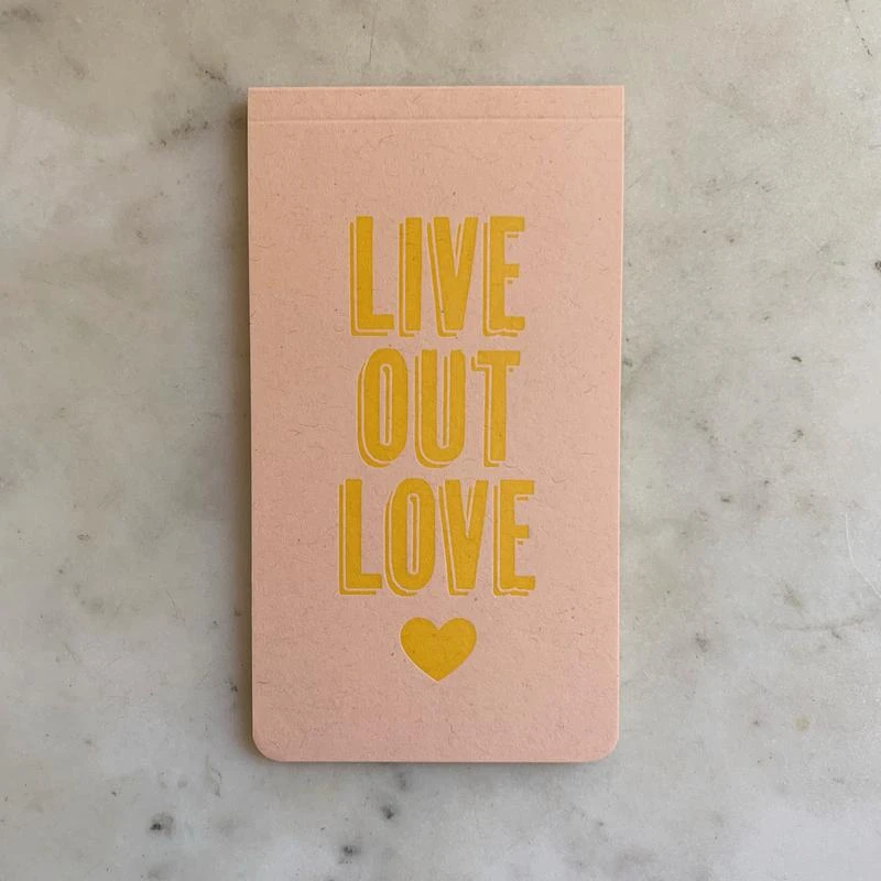 The Live Out Love Letterpress Notebook is a handy little jotter notebook to keep in your bag for genius ideas and random scribblings! Made in collaboration with Blackbird Letterpress right here in Baton Rouge, LA.