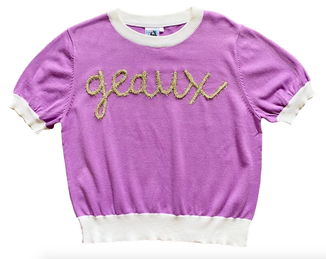 - The Tigers Glitter Script Short Sleeve Sweater