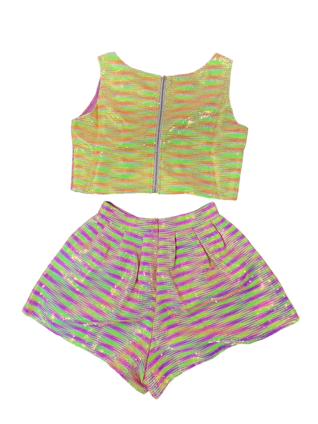Queen Of Sparkles Neon Sequin Stripe Shorts