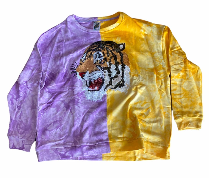 Purple and Gold Sweatshirt with Large Tiger Head