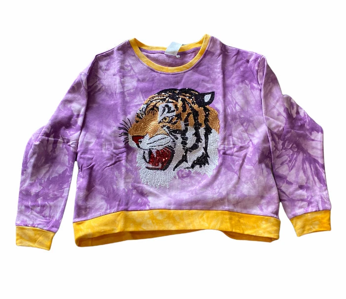 Purple Tie Die Sweatshirt with Large Tiger Head