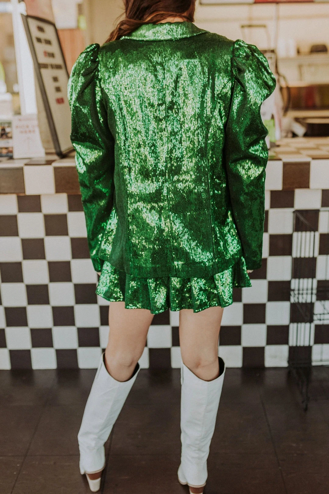 Queen of Sparkles Green Poof Sleeve Sequin Blazer
