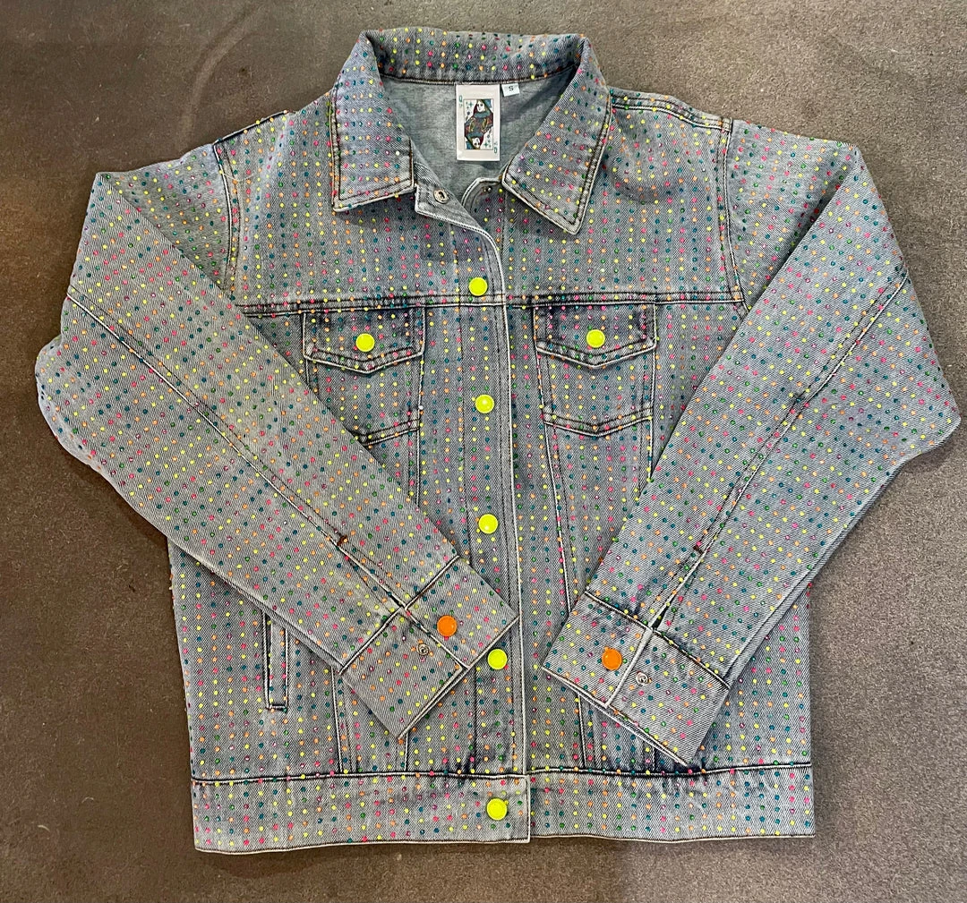 Queen of Sparkles Neon Rhinestone Jean Jacket