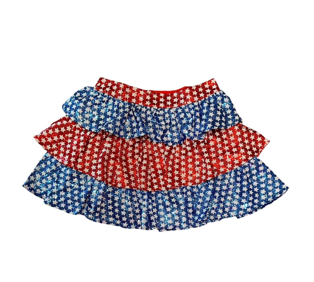 Queen of Sparkles Red, White & Blue Sequin Star Skort