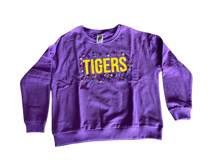Purple Sweatshirt with Tigers in Golf and Stones around it