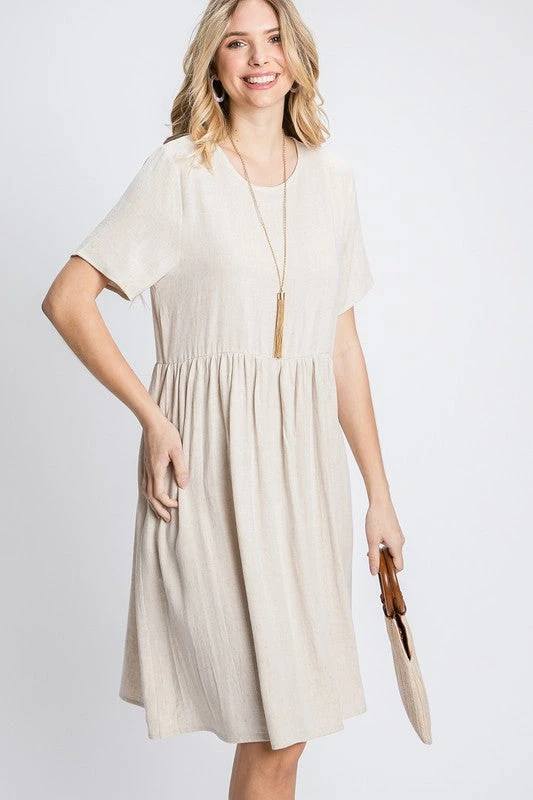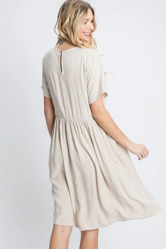 Baby Doll Style Dress With Keyhole And Button. Pockets On The SidesÂ