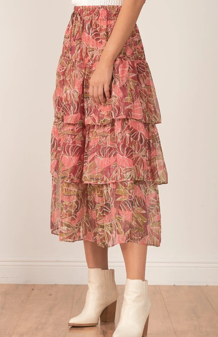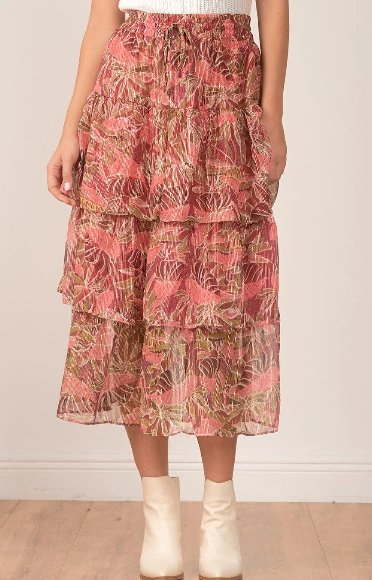 - Chiffon Fabric, Tired Maxi Skirt With Drawstring Waistband
