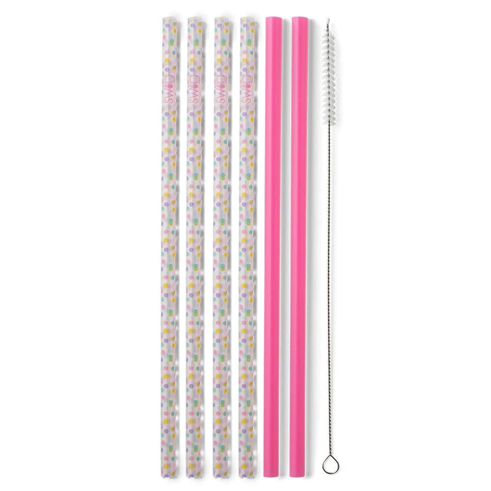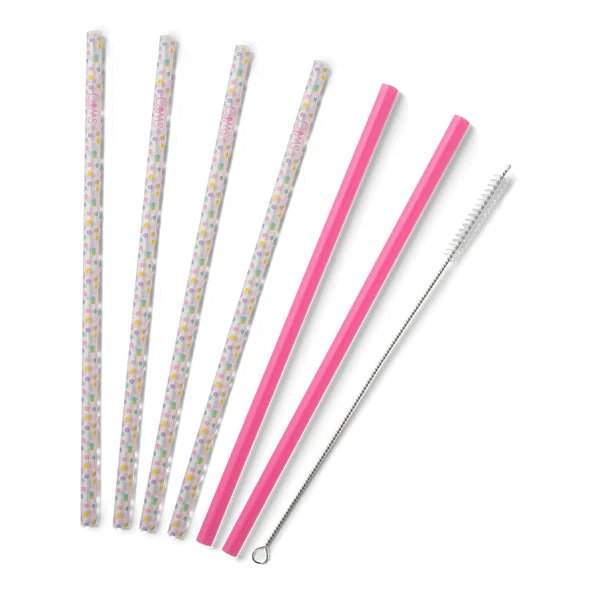 - 4 printed straws, 2 solid color straws, and 1 cleaning brush