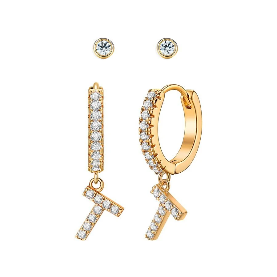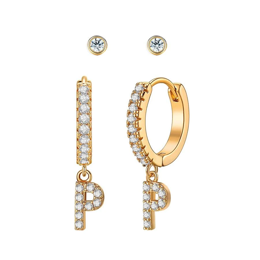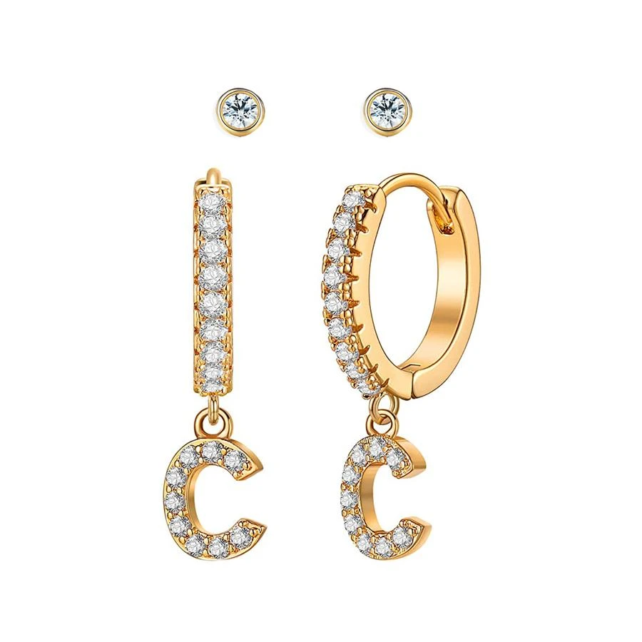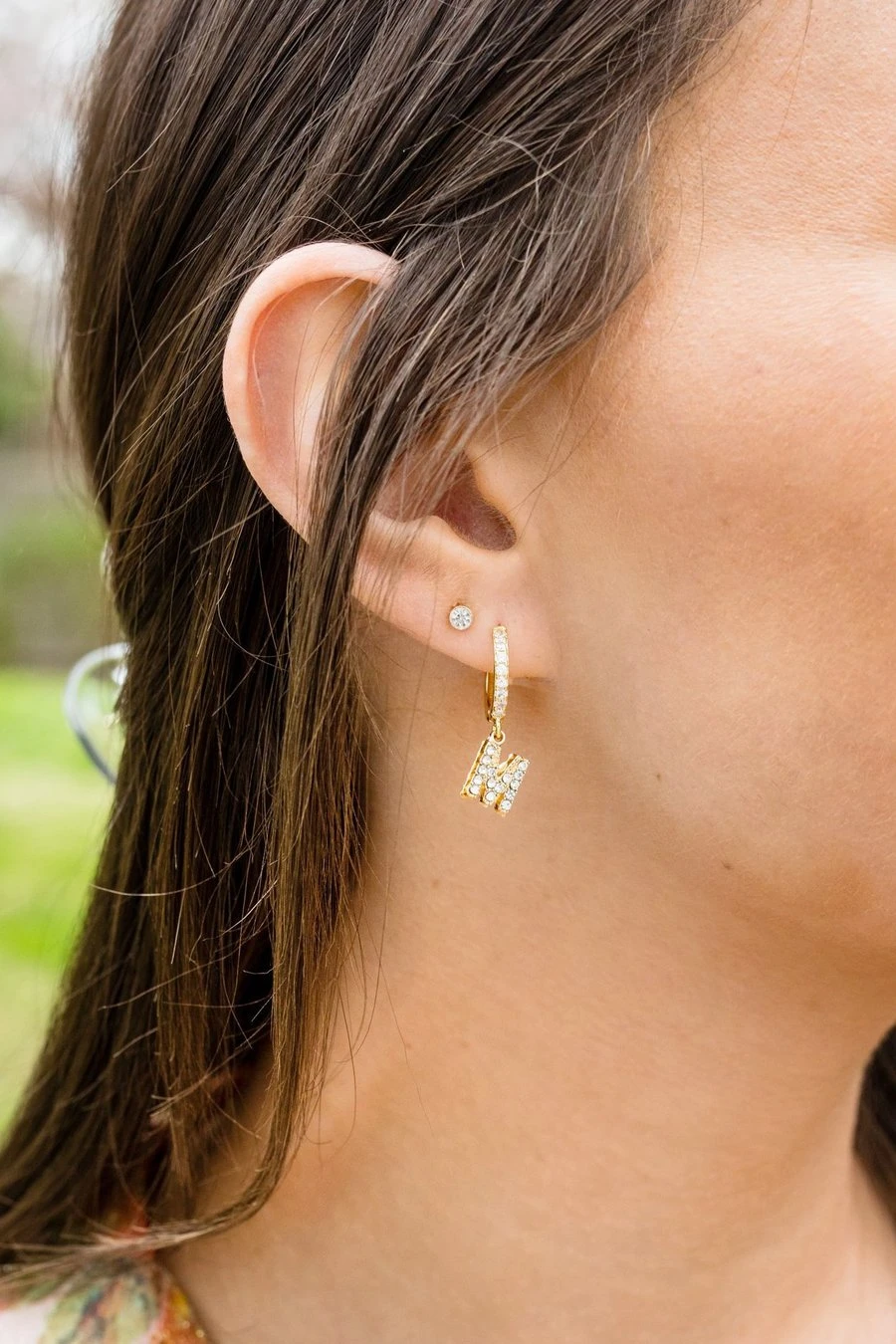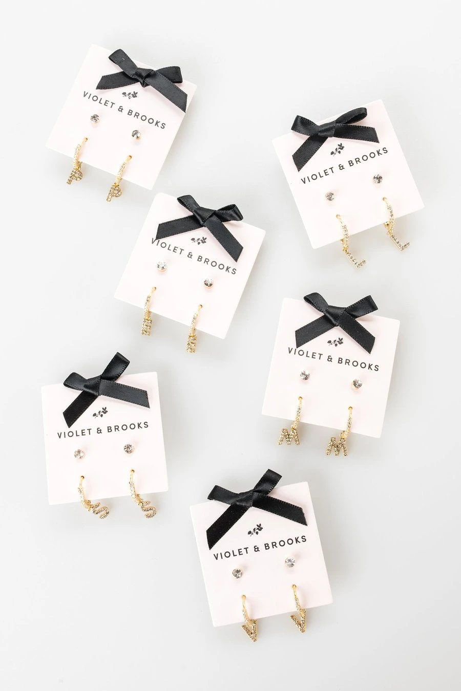 Add your own personalized touch with this dainty earring duo, featuring a crystal Initial huggie hoops plus micro post to mix and match.