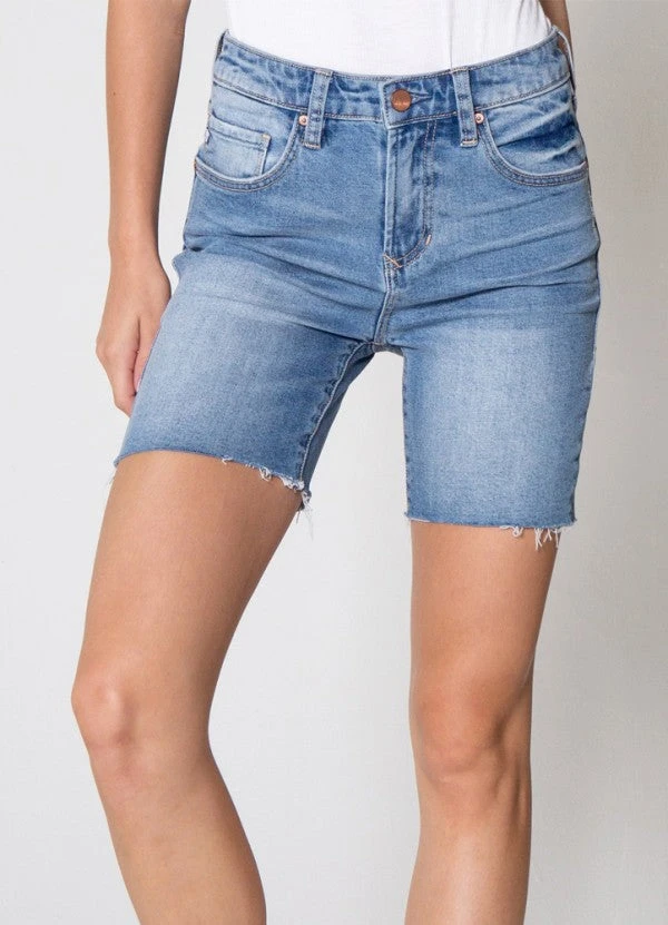 Dear John Ruthie Denim Shorts with High Rise and Cut Off Hem