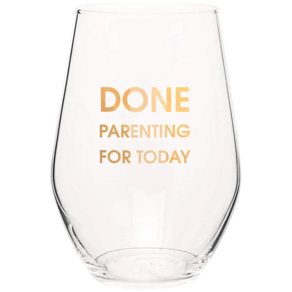 Crush your wine in style with our “Done Parenting For Today” gold foil stemless wine glass.