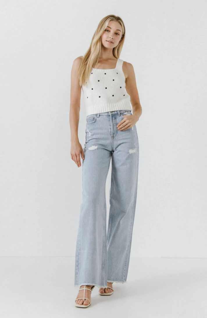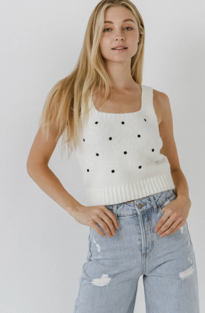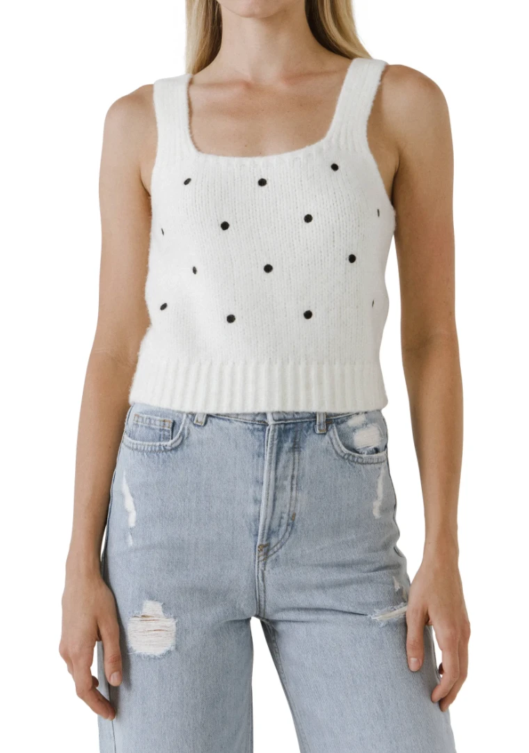 - With winsome dots and retro square necklines, this sweater-knit tank is sweetly whimsical and perfect for cool-weather layering