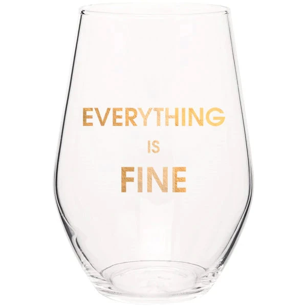 Crush your wine in style with our “Everything is Fine” gold foil stemless wine glass.