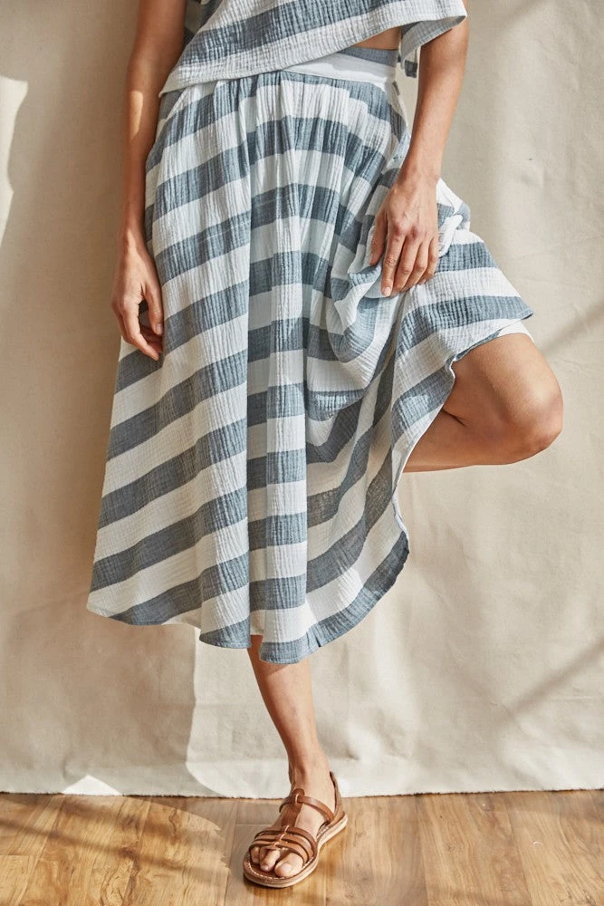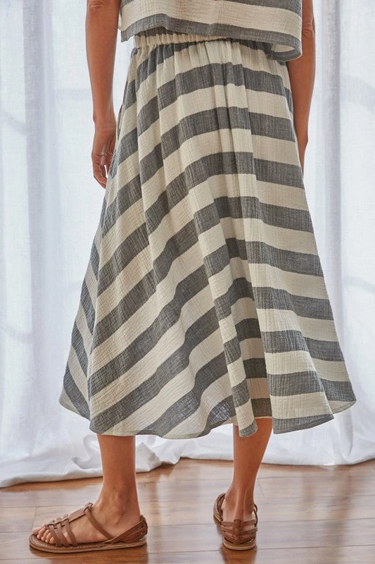 Woven Cotton Yarn Stripe Maxi Skirt w/ Lining.