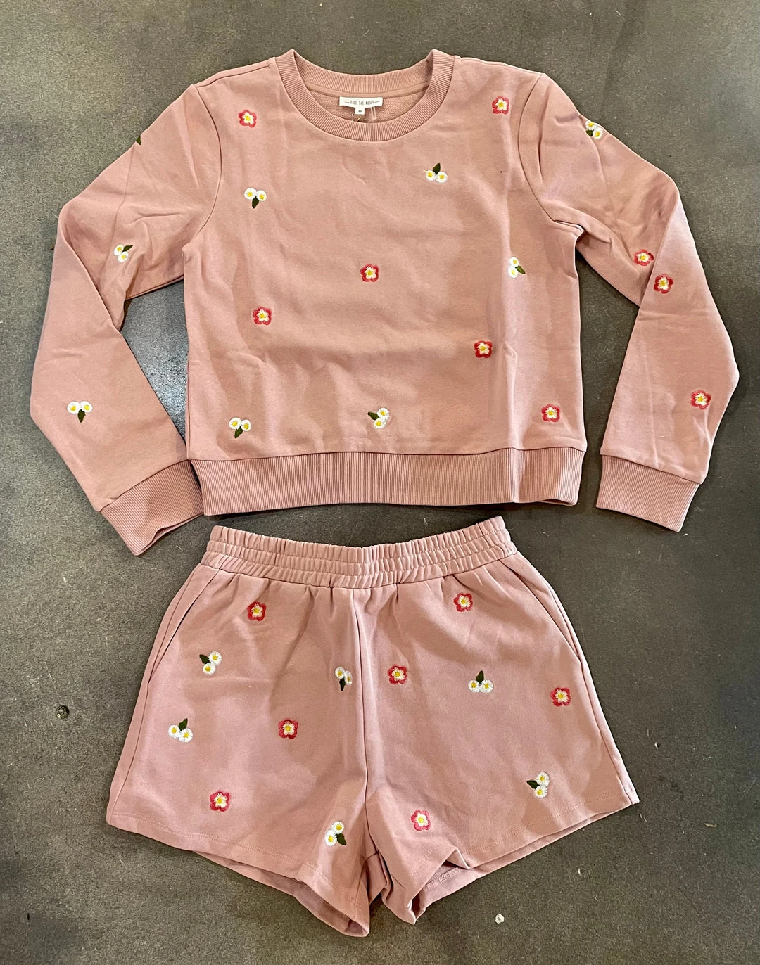 Pair with Matching Top: Floral Embroidered Sweatshirt