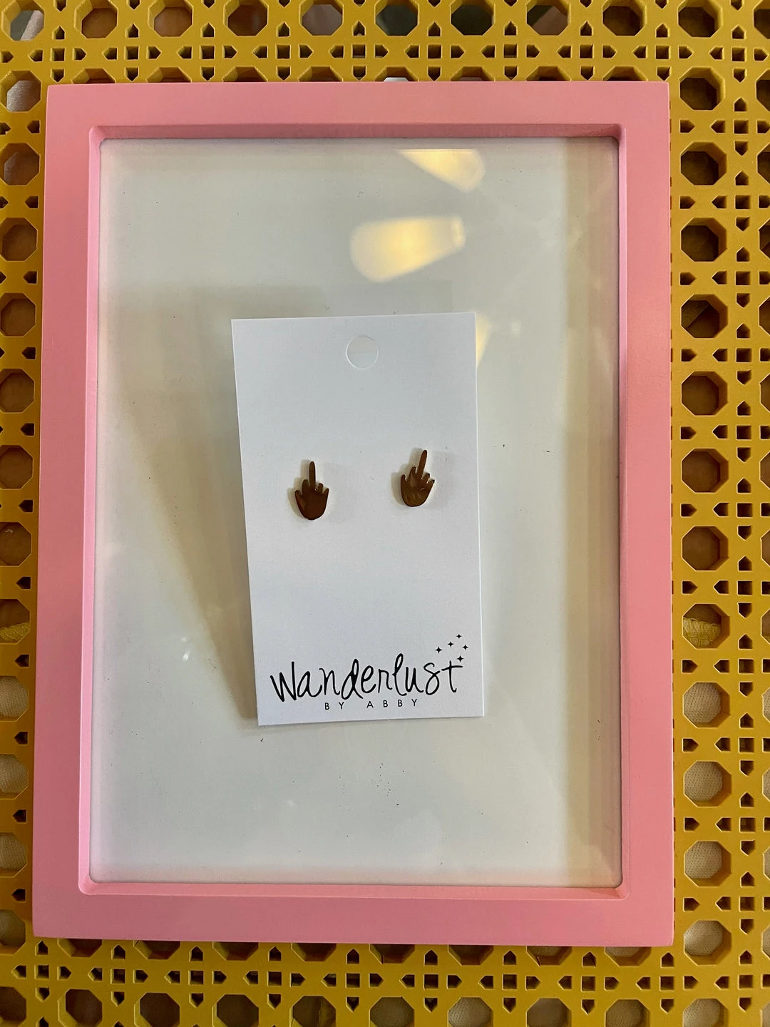 Be the first to review “Wanderlust By Abby Gold Middle Finger Studs” Cancel reply