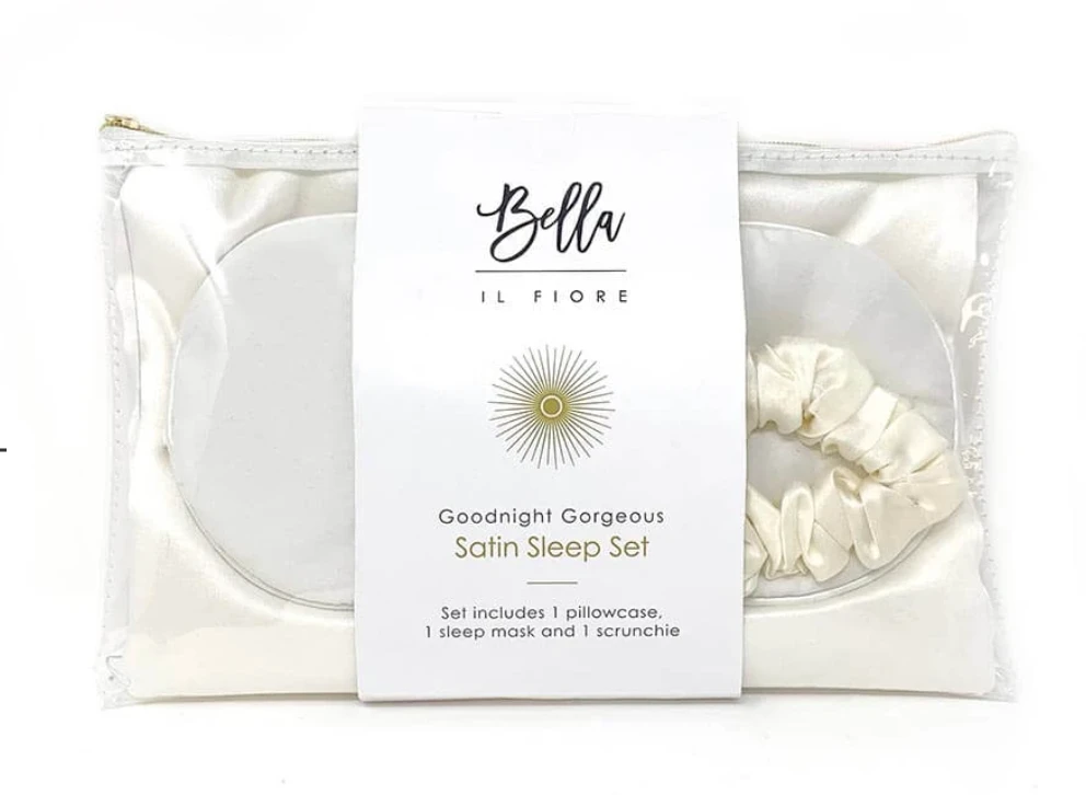 Say goodbye to unwanted wrinkles, puffy eyes, and dark circles, and hello to this ultimate slumber set in satin!
