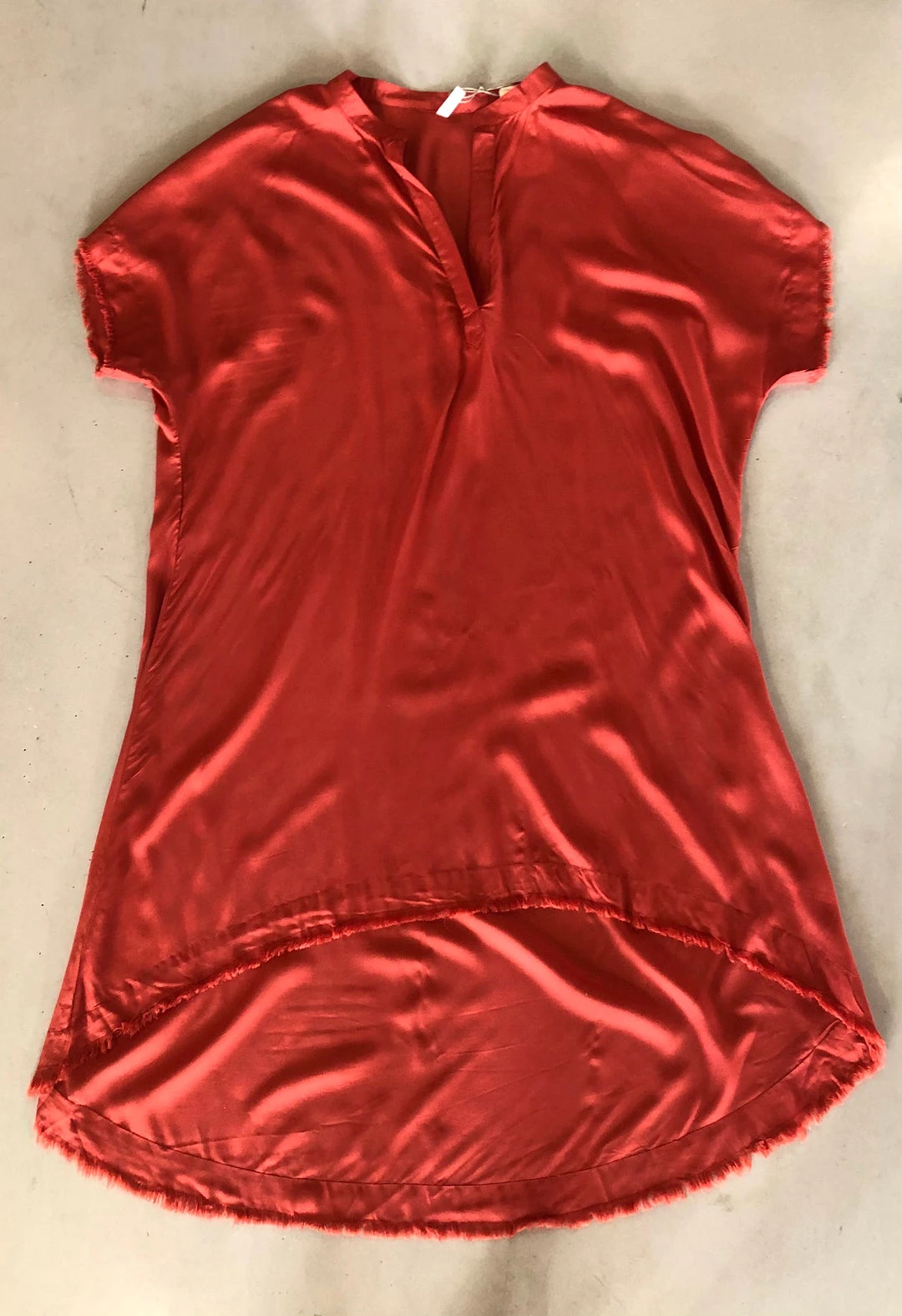 An easy-going dress to cover up poolside or by the shore. Featuring a unique frayed hem and a modest high-low silhouette.