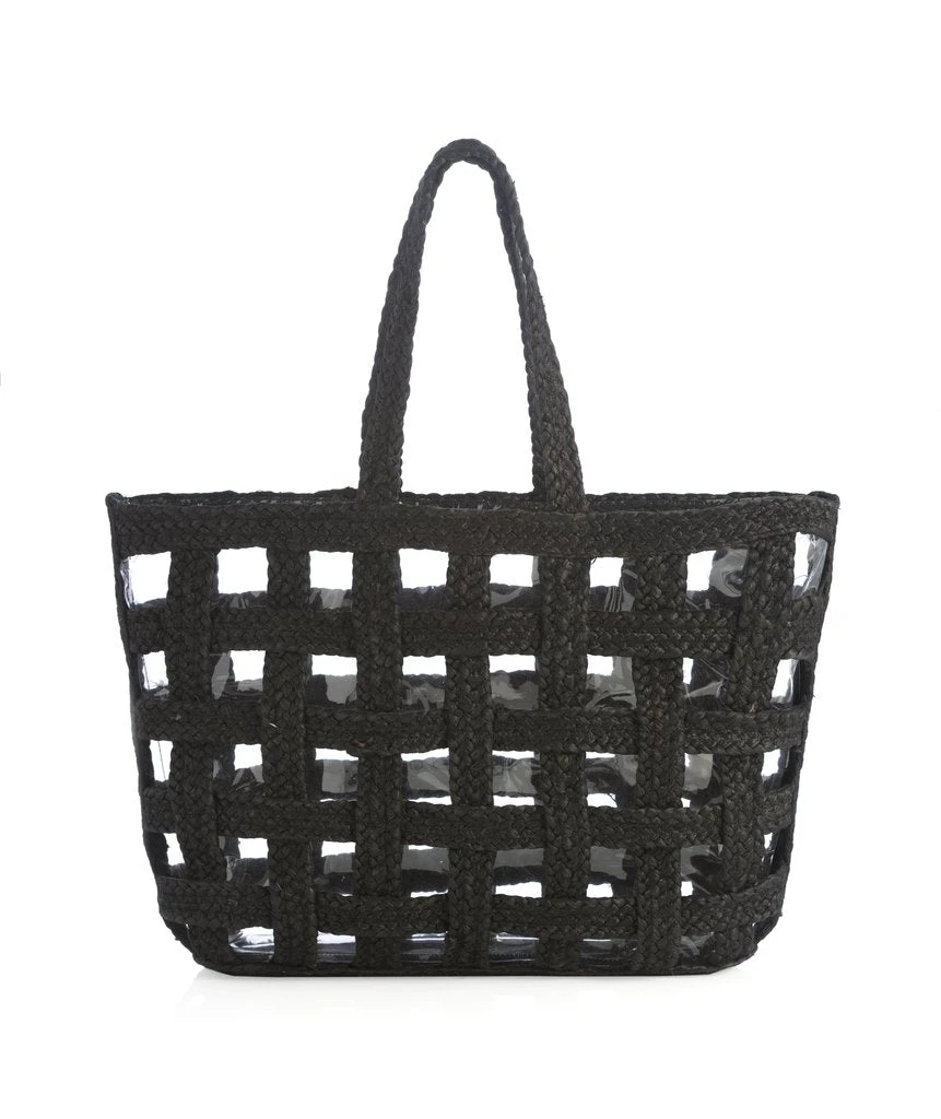 Black tote with jute and clear pvc lining