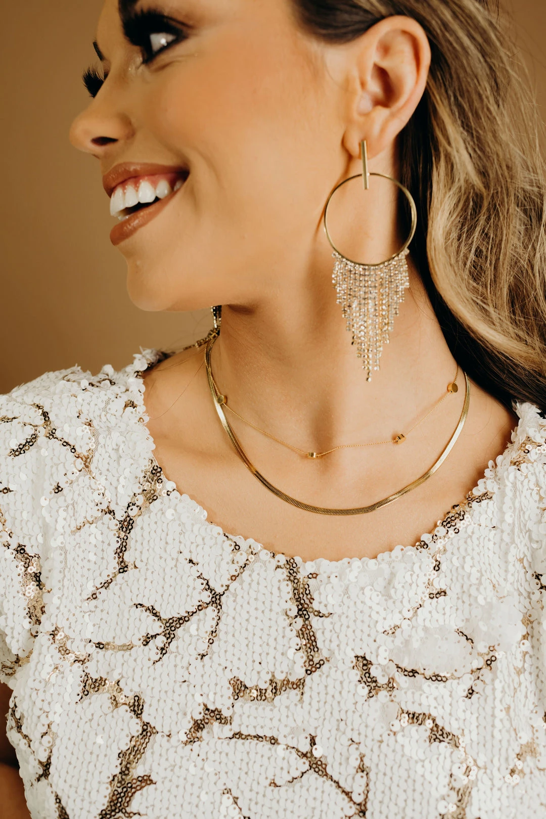 - Studded Hoop Chandelier Earring