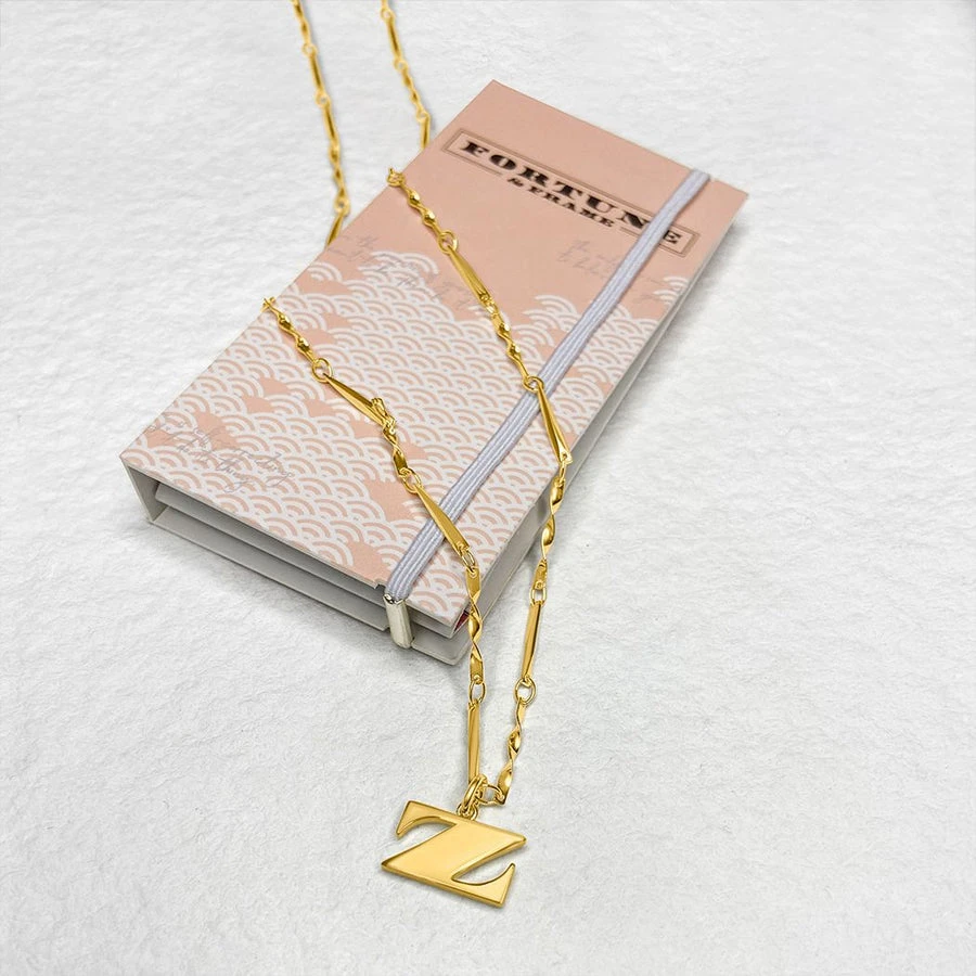 The font used on U.S. currency has been transformed into letter necklaces so that you can channel in your own personal fortune.