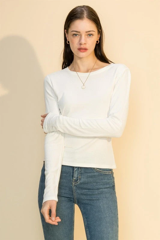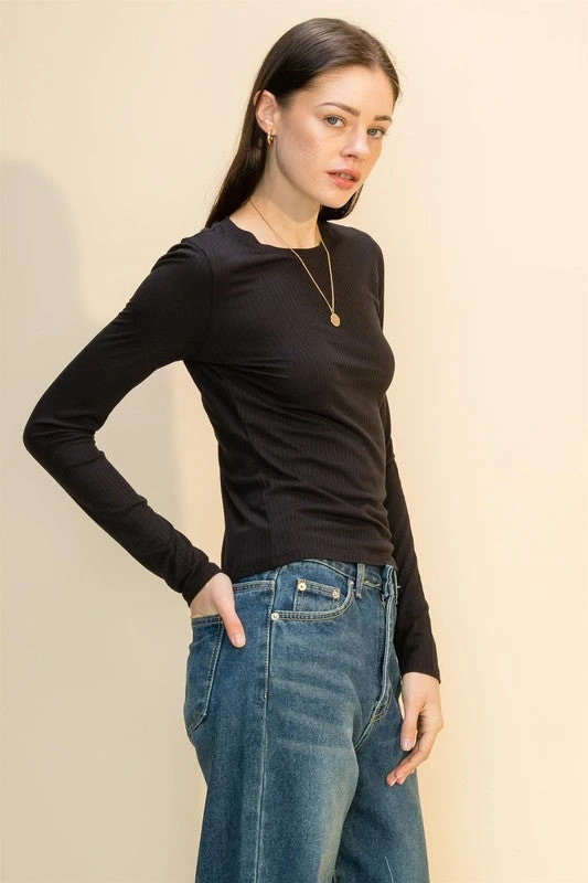 Ribbed Crew Neck Long Sleeve Top.