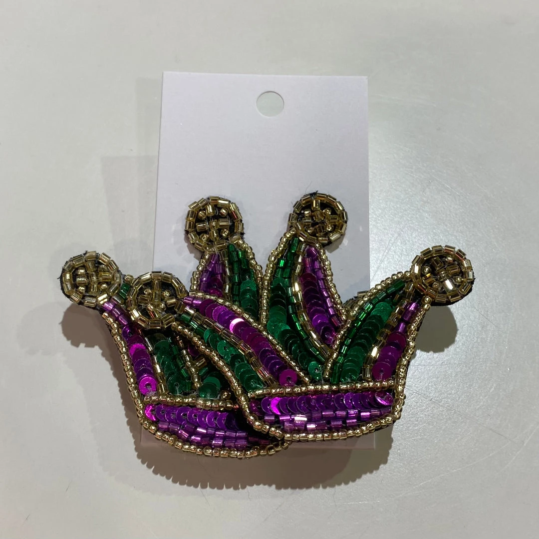 These earrings are a fun accessory to wear for the Mardi Gras season!