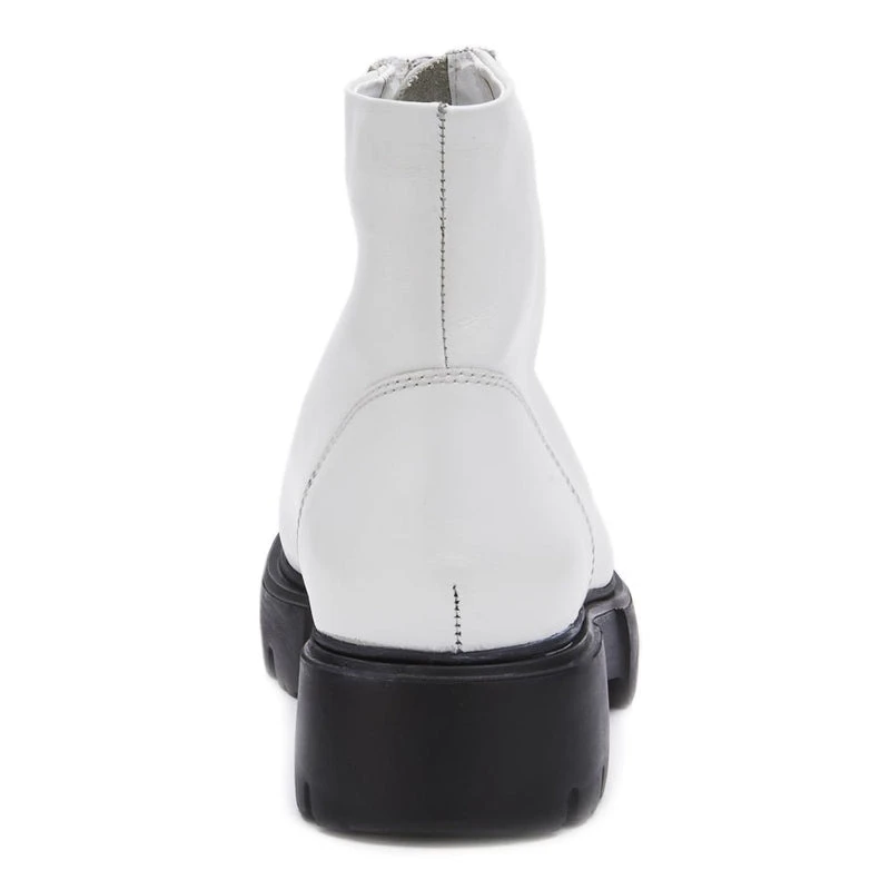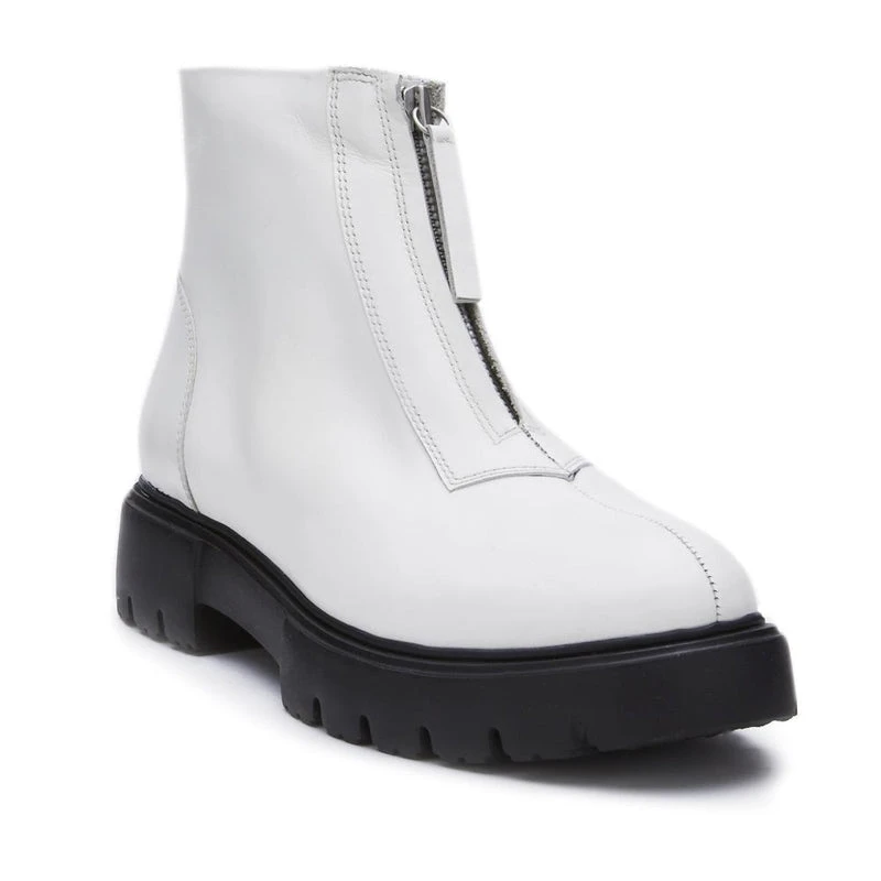 Utilitarian-style ankle boot with front zip detailing.