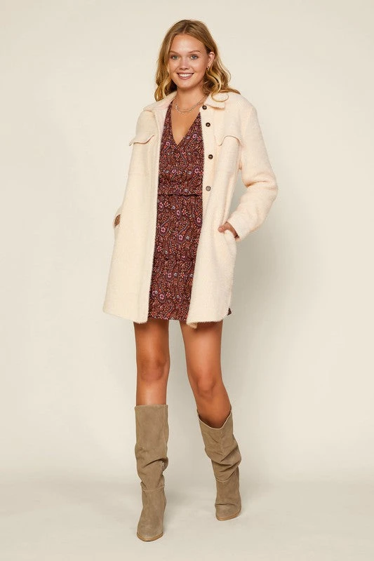 Long Sleeve Textured Knit Midi Button Down Shacket