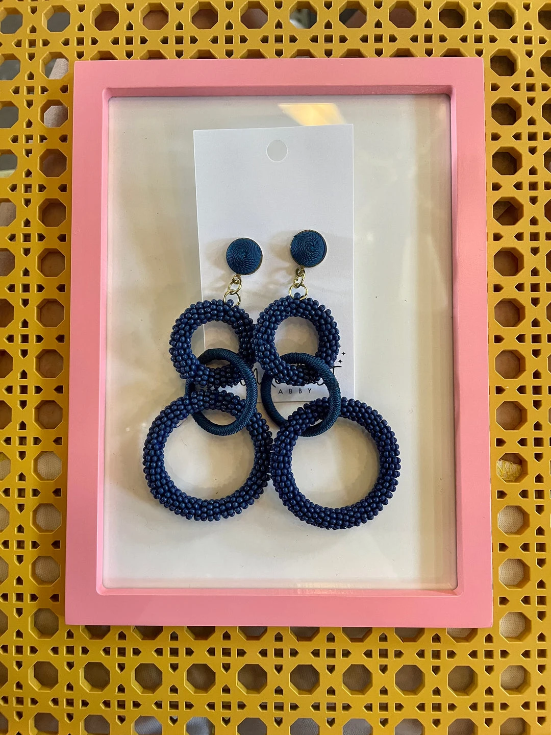 Be the first to review “Wanderlust By Abby Navy Beaded Triple Hoops NEW” Cancel reply
