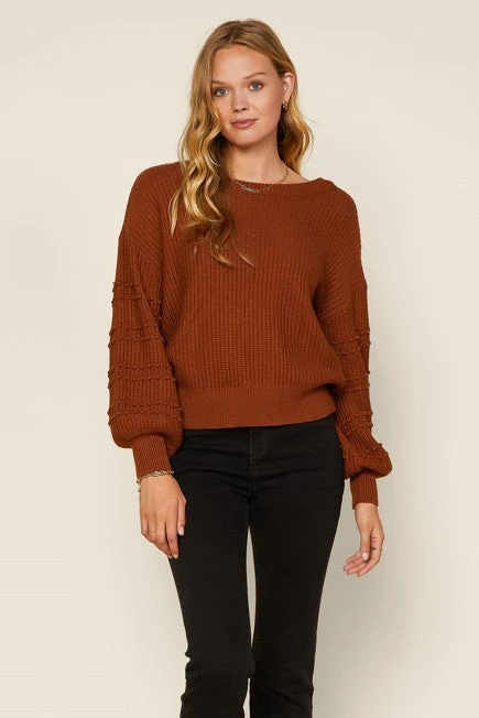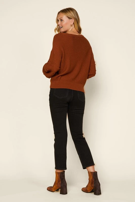 Long Balloon Pom Pom Detail Sleeve Knit Sweater