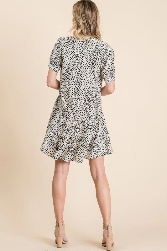 Button Down Cute Mini Dress. Tiered Ruffle Details