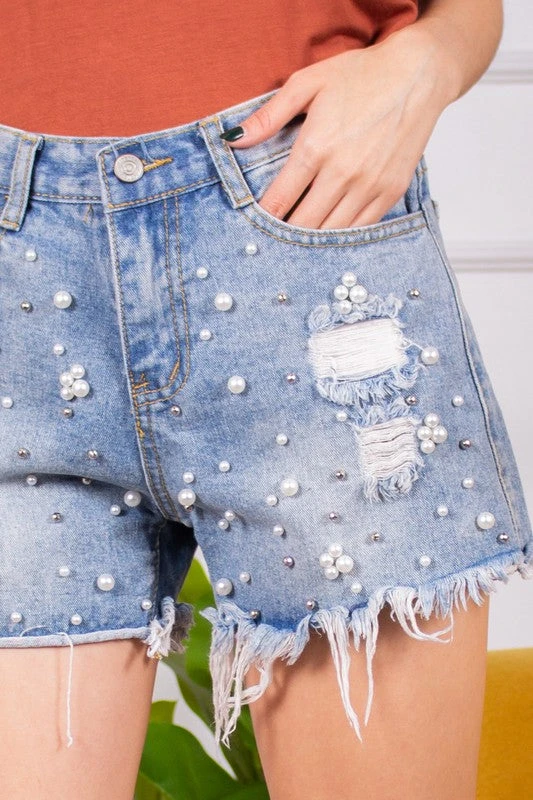 Be the first to review “Wanderlust By Abby NEW Denim Shorts With Pearl Embellishments” Cancel reply