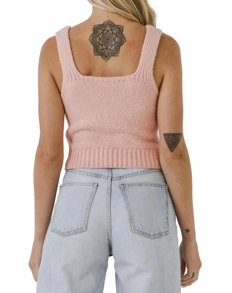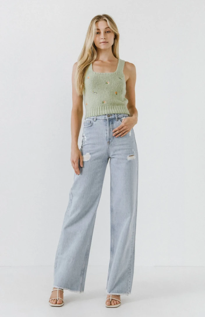 - Layer effortlessly with a soft-knit sweater-tank featuring delicate embroidered flowers for a look that pairs well with everything