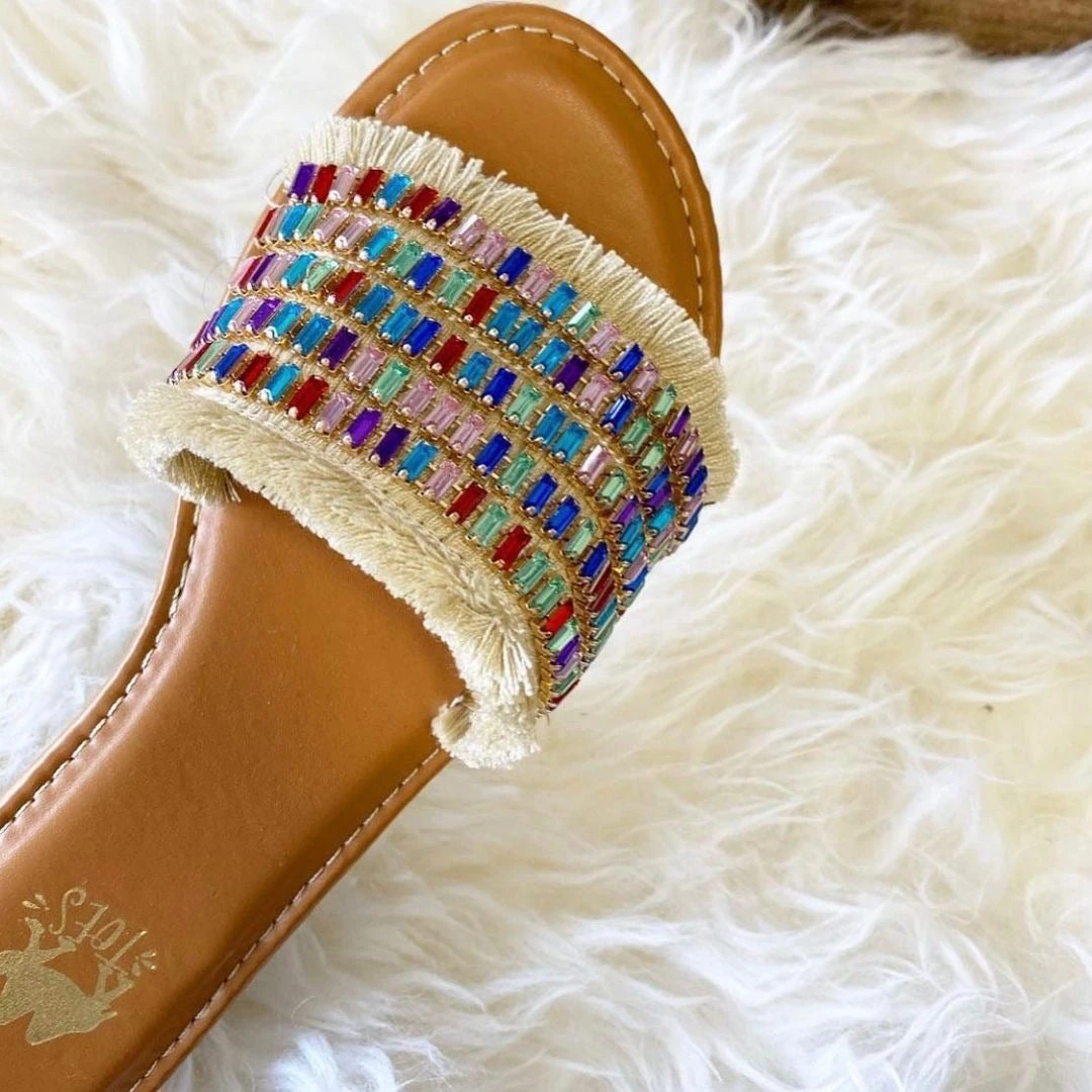 Fifi sandals with rainbow studs and a tassel trimÂ