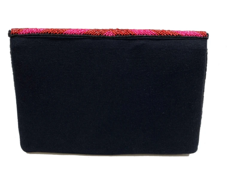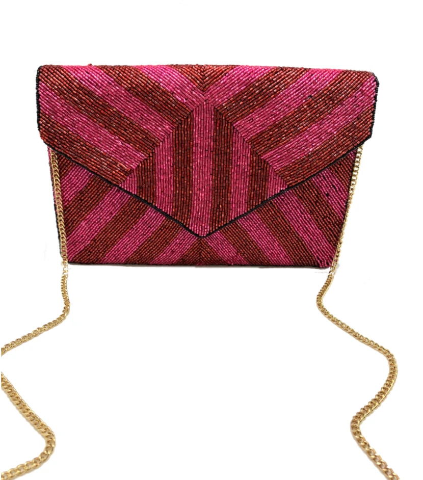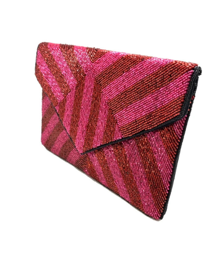 Geometric fuchsia and red stripe clutch