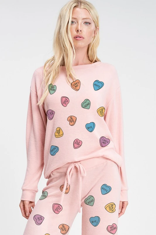 Heart Candy Sleep Lounge Wear Set. Soft Fabric, Casual Style, Every Day Wear